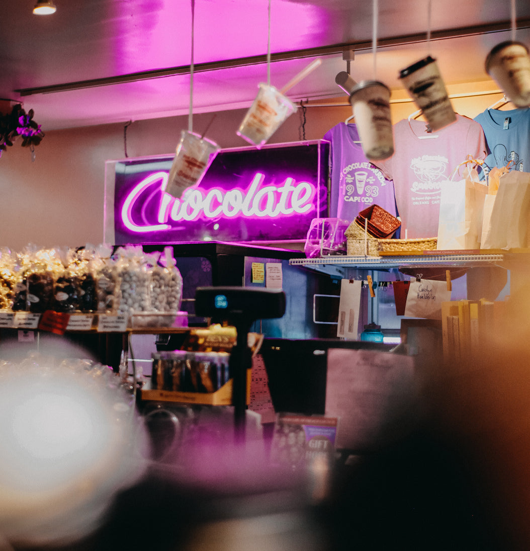 With the love of chocolate and a loan, we started The Chocolate Sparrow, a simple candy shop, in 1989 in North Eastham. We have grown into a local institution, open early morning to late night, every day of the year except Christmas.